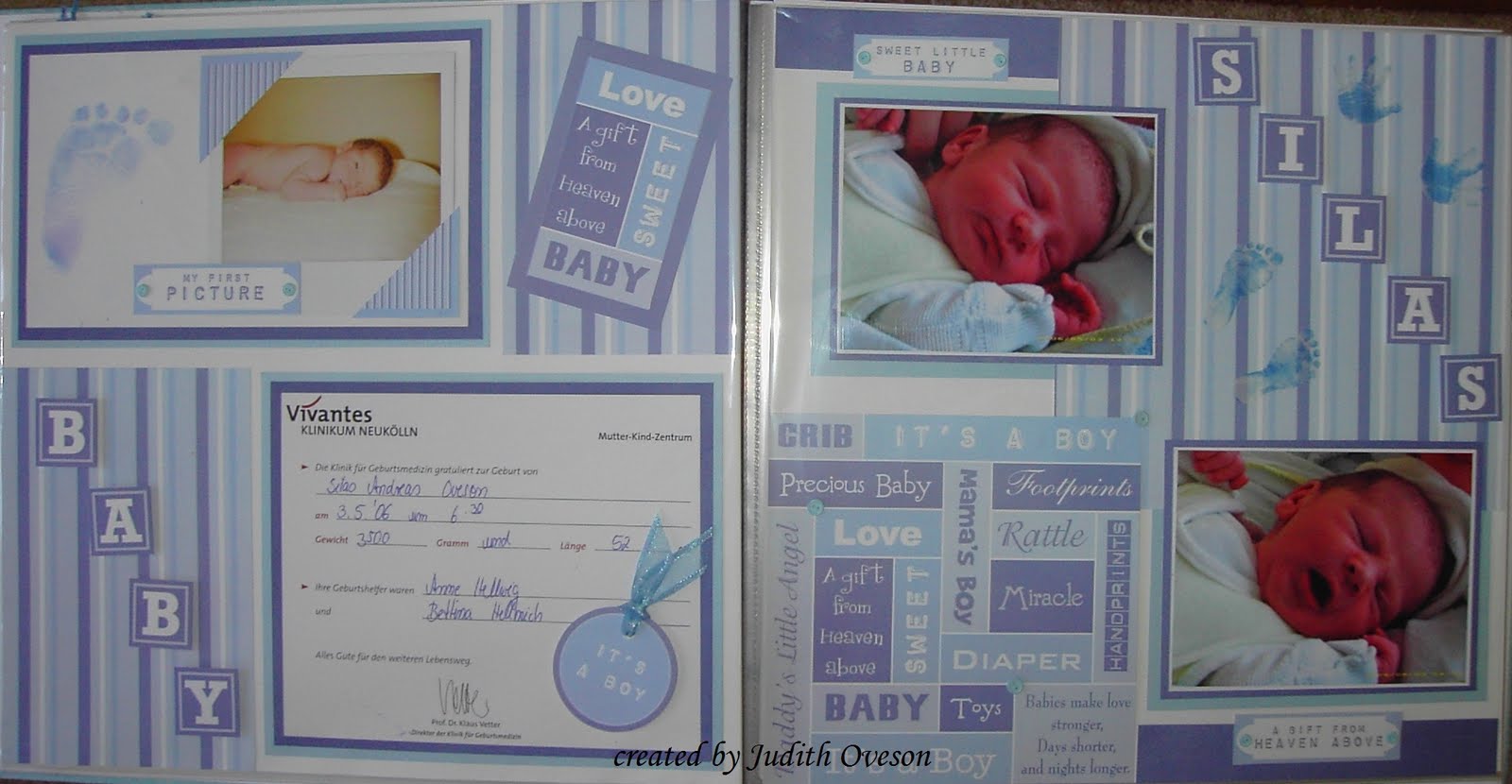 Since I can’t seem to find the time for crafting right now and I don’t want to leave you without any postings, I am going to show you some more of my scrapbook pages that I made for my olderst son’s scrapbook (long before the stamping and card making addiction got a hold of me 😉 )